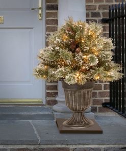 24 in. Pre-Lit Glittery Bristle Pine Porch Bush with Twinkly LED Lights