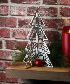 10 in. and 7 in. Silver Christmas Trees Table Decor. Lightweight Wood. Set of 2