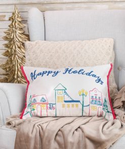 20 in. HGTV Home Collection Embroidered Happy Holidays Pillow