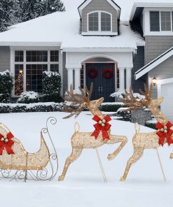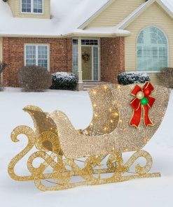42 in. Glittered Mesh Fabric Deer with 27 in. Sleigh and Lights
