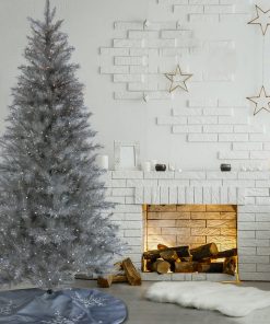 7.5 ft. Pre-Lit Acacia Pencil Slim Flocked Tree with Clear Lights