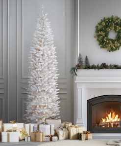 9 ft. Pre-Lit Kingswood Fir White Pencil Tree with Clear Lights