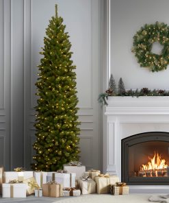 9 ft. Pre-Lit North Valley Spruce Pencil Slim Tree with Clear Lights