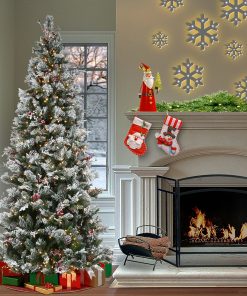 9ft. Pre-Lit Snowy Bedford Pine Hinged Tree with PowerConnect Clear Lights