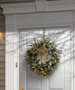 24 in. Pre-Lit Snowy Morgan Spruce Porch Bush with Twinkly LED Lights