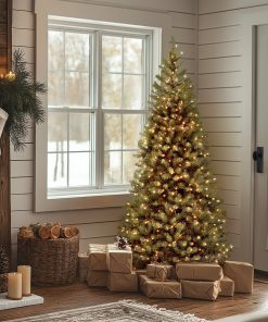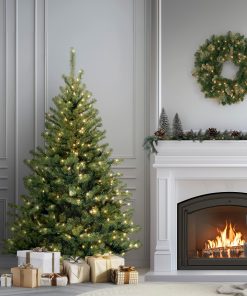 6 ft. Pre-Lit Linden Spruce Slim Tree with Warm White LED Lights