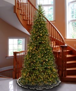 Though tall in height. this Dunhill Fir tree offers a slimmer profile which may make it better for display in corners or areas with limited floor space. compared to typical trees of similar height. It is pre-lit with 900 clear lights for an elegant holiday glow. Hinged branch construction make setup and takedown a breeze. Metal folding stand include. for indoor use only.
