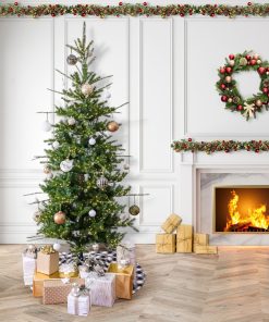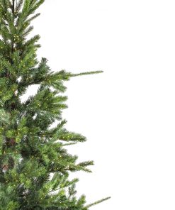 The Feel Real® Lark Pine Medium Hinged Tree offers a unique design to showcase your favorite holiday ornaments. Features Feel Real® branch tip technology. creating a tree with remarkable realism. These crush-resistant branch tips are molded from real tree branches for an authentic living tree appearance. This tree is pre-strung with 5320 Warm White LED rice lights to create a festive holiday glow.