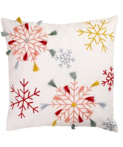 The HGTV Home Collection by National Tree Company 18 inch velvet snowflake embroidered pillow sounds beautiful! The white velvet provides a luxurious feel. while the multicolor snowflakes add a playful. vibrant touch. The tassels are a charming detail that enhances the overall design. making it perfect for creating a cozy winter vibe. You can use it on your couch. in an armchair. or as part of a bedspread to create a festive focal point.