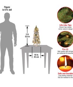- This Snowy Downswept Pre-Lit Artificial Green Christmas Tree is 2 feet tall with a 10 inch base diameter. Featuring hundreds of individually crafted branch tips to create full bodied branches. this tree is designed to look and feel lifelike.