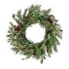 This Bristle Berry wreath features Feel Real branch tip technology. creating a decoration with remarkable realism. This mixed evergreen tip wreath is trimmed with red berries and pine cones. The pillar candle features an artificial flickering light that is operated by remote control with options for multiple light functions. This wreath can be displayed on doors. walls and windows in indoor or covered outdoor locations.
