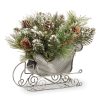 This Crestwood Spruce is a sparkling mixed branch centerpiece featuring bristle tips that are trimmed with pinecones. red berries and glitter. Black painted steel base is topped with a candle plate that fits a single pillar style candle. Glass candle enclosure is included. Display this decoration in indoor locations only.
