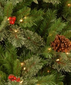 - Designed with a Bristle Berry Pine branch base. this pre-lit artificial Christmas wreath is 24 inches wide. decorated with pine cones and berry clusters.