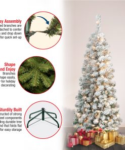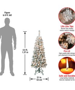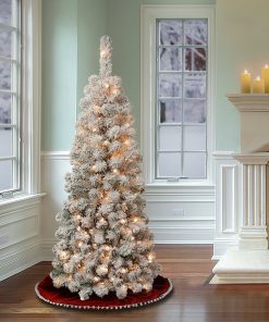 4.5 ft. Pre-Lit Acacia Pencil Slim Flocked Tree with Clear Lights