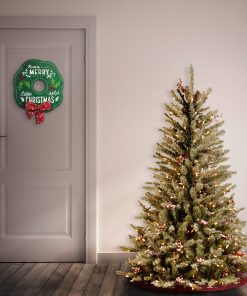 - This Dunhill Fir Slim Pre-Lit Green Christmas Tree is 7.5 feet tall with a 43 inch base diameter. Flocked with pine cones. berries and frosted branches for added decoration and featuring tens of individually crafted branch tips to create full bodied branc