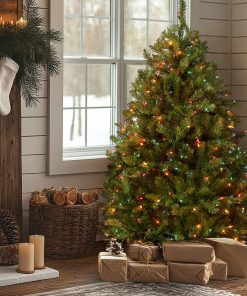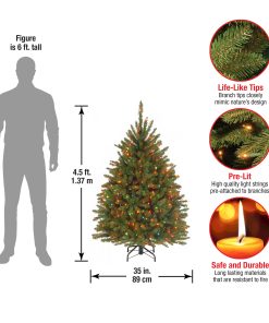The size of this Dunhill Fir tree makes it a great choice for display on tabletop. in secondary rooms or children’s rooms. Pre-strung with 450 multicolor lights. this tree features hinged branch construction and includes a sturdy metal tree stand making assembly quick and easy. Though compact in size. the fullness of design provides plenty of branches for holiday trimmings.