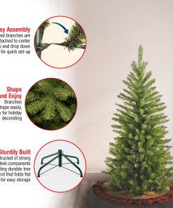 - This Kingswood Fir Slim Artificial Green Christmas Tree is 4 feet tall with a 22 inch base diameter. Featuring hundreds of individually crafted branch tips to create full bodied branches. this tree is designed to look and feel lifelike.