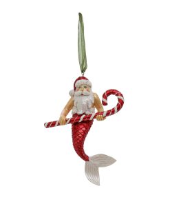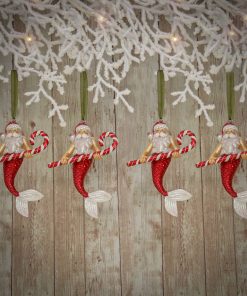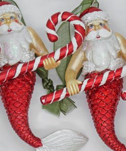 The HGTV Home Collection by National Tree Company 4 piece glass Santa merman ornaments holding candy canes sound whimsical and fun! They’ll add a playful touch to your holiday decor and are sure to be a conversation starter. You can hang them on your Christmas tree. use them in garlands. or even display them in decorative bowls or on a mantle. Their unique design makes them perfect for a beach-themed or coastal holiday display. especially if you mix them with other ocean-inspired ornaments.
