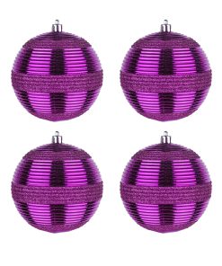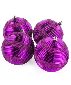 The shatterproof swirling purple ornaments with glitter in a set of four are a fantastic choice for adding a rich. regal touch to your holiday decor! The glitter will give them a lovely sparkle. making them stand out beautifully on your tree or in festive displays. You can pair these purple ornaments with gold. silver. or white for an elegant look. or mix them with other vibrant colors for a more playful arrangement. They would also look stunning in decorative bowls. on garlands. or incorporated into wreaths. All pieces are constructed of lightweight and shatterproof polystyrene material.