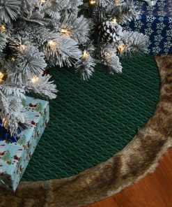 Add a relaxed and cozy finishing touch to your Christmas tree with the Rural Homestead Collection Green with Faux Fur Quilted Tree Skirt. Made of 100% polyester. this skirt features a velvety green quilted center and a plush faux fur border. The split seam design allows for easy placement with Velcro tabs included to close and secure the seam.