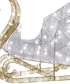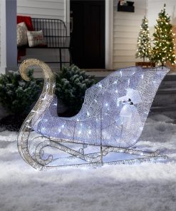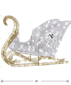 - Includes one 48 inches in length silver and gold Santa’s Sleigh with ribbon and ornaments. To power the lights. simply plug in to the nearest wall outlet