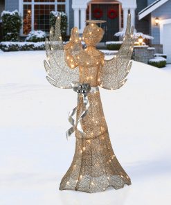 - Includes one 53 inch tall champagne gold praying Angel with trumpet. To power the lights. simply plug in to the nearest wall outlet