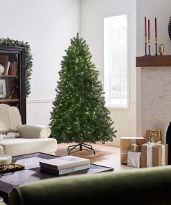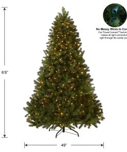 This Downswept DouglasFir tree features the PowerConnect through-the-pole lighting system that eliminates the need for connecting multiple light strings. reducing set up time. Also featured is Feel Real branch tip technology. creating a tree with remarkable realism. This tree is pre-strung with 650 Dual Colorlights that change from warm white to multicolor with the touch of a button. Included is a foot pedal switch to control 10 different light colors and actions. This tree features hinged branch construction for ease of assembly. Sturdy metal tree stand is included.