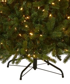 - This Downswept Douglas Fir Full Pre-Lit Artificial Green Christmas Tree is 6.5 feet tall with a 49 inch base diameter. Featuring hundreds of Feel Real individually crafted branch tips to create full bodied branches. this tree is designed to look and fee