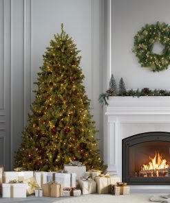 The Dunhill Fir is a full body tree featuring a generous number of branch tips for holding holiday trimmings. It is pre-strung with 650 clear lights that remain lit even if a bulb burns out. This tree features hinged branch construction for ease of assembly. Sturdy metal tree stand is included.