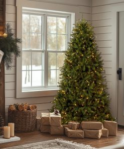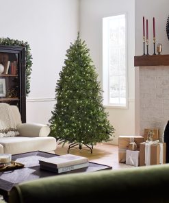 This Dunhill Fir tree features the PowerConnect through-the-pole lighting system that eliminates the need for connecting multiple light strings. It is pre-string with 600 Dual Colorlights that change from warm white to multicolor with the touch of a button. Included is a foot pedal switch to control 10 different light colors and actions. This tree features hinged branch construction for ease of assembly. Sturdy metal tree stand is included.