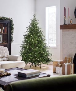 The Frasier Grande tree features Feel Real branch tip technology. creating a tree with remarkable realism. These crush-resistant branch tips are designed from real tree branches for an authentic living tree appearance. This tree is pre-strung with 550 Dual Colorlights that change from warm white to multicolor with the touch of a button. Included is a foot pedal switch to control 10 different light colors and actions. This tree features hinged branch construction for ease of assembly. Sturdy metal tree stand is included.