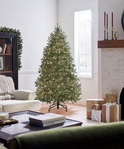 This Jersey Fraser Fir tree features Feel Real branch tip technology. creating a tree with remarkable realism. These crush-resistant branch tips are molded from real tree branches for an authentic living tree appearance. This full-bodied tree is pre-strung with 900 clear lights that remain lit even if a bulb burns out. The medium width of this tree may be a better fit in areas where floor space is limited. This tree features hinged branch construction for ease of assembly. Sturdy metal tree stand is included.