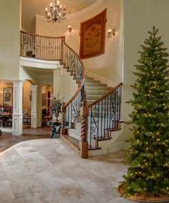 This Prescott Slim tree features Feel Real branch tip technology. creating a tree with remarkable realism. These crush-resistant branch tips are molded from real tree branches for an authentic living tree appearance. This slim profile tree. pre-strung with 300 clear lights. is great for display in corners or areas with limited floor space. This tree features hinged branch construction for ease of assembly. Sturdy metal tree stand is included.