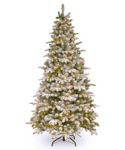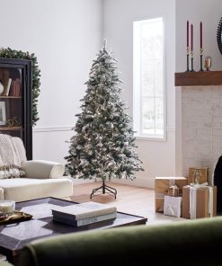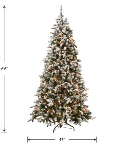 This Snowy Everest has flocked branches giving the appearance of freshly fallen snow. It features Feel Real branch tip technology. creating a tree with remarkable realism. These crush-resistant branch tips are molded from real tree branches for an authentic living tree appearance. This tree is pre-strung with 350 clear lights that remain lit even if a bulb burns out. The medium width of this tree may be a better fit in areas where floor space is limited. Three section construction and hinged branches add to ease of assembly. Sturdy folding metal tree stand is included.