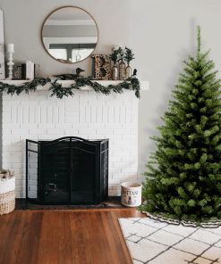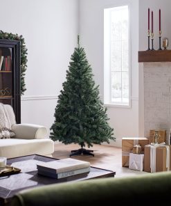 The Kincaid Spruce presents a classic cone shape evergreen tree with wide diameter branch tips for added fullness. This tree features wrapped branch construction for ease of assembly. Sturdy folding metal tree stand is included.