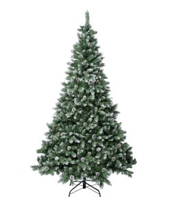 The Oakley Hills Snow tree is a full-bodied tree that features white-tipped branches giving the appearance of freshly fallen snow. It is trimmed with pinecones for added natural appeal. Designed with hinged branches for easy assembly and includes a sturdy metal folding stand. For indoor display only.