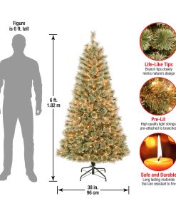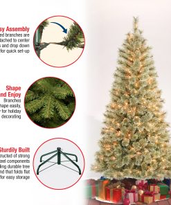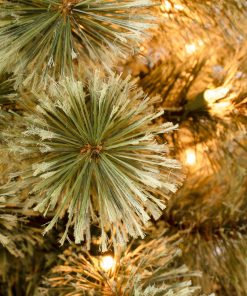 The Arcadia Pine tree offers a slimmer profile than trees of similar height making it a great choice for display in corners or in areas where floor space is limited. It is pre-lit with 200 clear lights that remain lit even if a bulb burns out. This tree features wide cashmere branch tips giving it a softer appearanc and hinged branch construction for ease of assembly. Sturdy metal folding stand included. for indoor display.