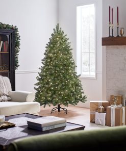 This Downswept Douglas tree features Feel Real branch tip technology. creating a tree with remarkable realism. These crush-resistant branch tips are molded from real tree branches for an authentic living tree appearance. It is pre-strung with 600 clear lights that remain lit even if a bulb burns out. This tree features hinged branch construction for ease of assembly. Sturdy metal tree stand is included.