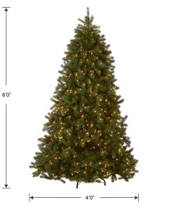 - This Downswept Douglas Fir Full Pre-Lit Artificial Green Christmas Tree is 6 feet tall with a 47 inch base diameter. Featuring hundreds of Feel Real individually crafted branch tips to create full bodied branches. this tree is designed to look and feel