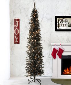 This tinsel tree brings a whole new dimension to your seasonal decorating scheme. Slim and sleek. this tinsel tree with sturdy metal stand is pre-strung with 150 clear lights that remain lit even if a bulb burns out. It is perfect for display in corners or areas with limited floor space. Set up is quick and easy allowing you to enjoy a decorative piece that will shine and sparkle.