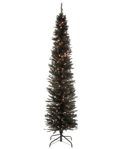 This tinsel tree brings a whole new dimension to your seasonal decorating scheme. Slim and sleek. this tinsel tree with sturdy metal stand is pre-strung with 150 clear lights that remain lit even if a bulb burns out. It is perfect for display in corners or areas with limited floor space. Set up is quick and easy allowing you to enjoy a decorative piece that will shine and sparkle.
