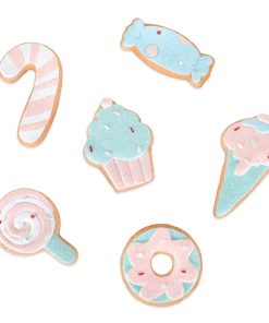 Designed with delicious detail. these 6 Gingerbread Sugarplum Cookies feature a different dessert shape. all finished in soft blue and pink pastel colors. They are constructed with a combination of durable stone powder and poly resin materials with hand painted detailing. They are perfect for adding a whimsical touch to your holiday decor or any seasonal celebration. They can be used as centerpieces. placed on shelves. or even given as gifts.