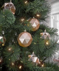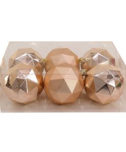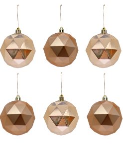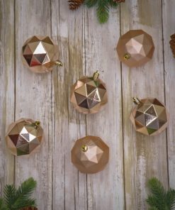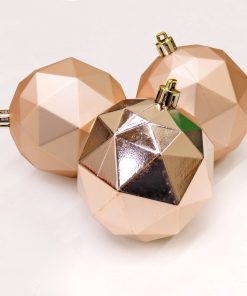 This set consists of six rose gold color ball ornaments that feature a light-reflecting geometric design. Included are ornaments in both gloss and matte finishes. all constructed of lightweight and shatterproof polystyrene material. The design is stylish and modern. perfect for adding a contemporary touch to your holiday decor! Their unique shapes will create visual interest and elegance on your Christmas tree or in other festive displays.
