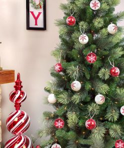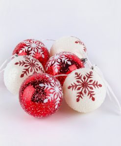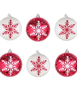 The shatterproof snowflake ornaments in red and white with glitter in a set of six sound perfect for adding a festive and wintry touch to your holiday decor! The combination of colors and glitter will create a beautiful. shimmering effect. You can hang them on your Christmas tree. use them to adorn garlands. or even incorporate them into wreaths for a cheerful look. They’d also look great as part of a table centerpiece or hung from light fixtures for a whimsical touch. All pieces are constructed of lightweight and shatterproof polystyrene material.