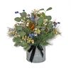 This Swiss Chic decorated mantle swag features a mixture of evergreen and bristle branch tips tightly grouped together to form this holiday décor piece. It is trimmed with pinecones. leafy greens. white twigs. clusters of blue berries and gold metal bells. A black velvet ribbon and bow add the finishing touch. Display this festive swag over a fireplace mantle or on a tabletop. For indoor use only.