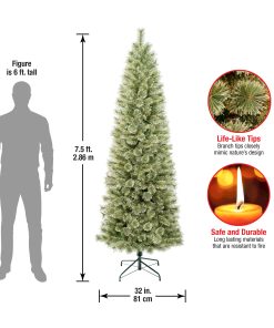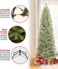 The Arcadia Pine Cashmere Christmas Tree is a slim profile tree that is a great choice for display in corners. small rooms or areas with limited floor space. It features a generous number of branch tips for holding holiday trimmings. This tree features hinged branch construction for ease of assembly. Sturdy folding metal tree stand is included.