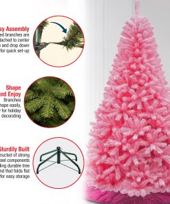 The Color Pop series of Christmas trees offer a unique and engaging alternative to the traditional green holiday centerpiece. Designed in a traditional cone shape. this tree is thick with branch tips that are a rich shimmering pink color. This three-section tree is crafted with high quality materials and hinged branches for easy set up and includes a sturdy metal folding stand. For indoor display only.