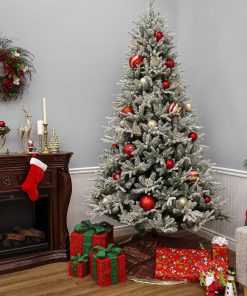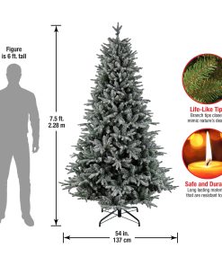 This Holliston tree features Feel Real branch tip technology. creating a tree with remarkable realism. These crush-resistant branch tips are molded from real tree branches for an authentic living tree appearance. It features flocked branches. adding to its snowy charm and making it a stunning centerpiece for your holiday decor. Perfect for creating a cozy. festive atmosphere! Designed with hinged branches for easy assembly and includes a sturdy metal folding stand. For indoor display only.
