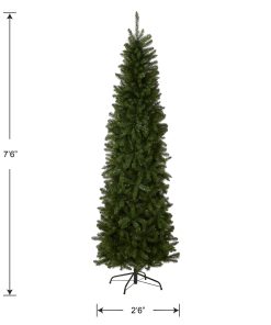 - This Kingswood Fir Slim Artificial Green Christmas Tree is 7.5 feet tall with a 30 inch base diameter. Featuring hundreds of individually crafted branch tips to create full bodied branches. this tree is designed to look and feel lifelike.