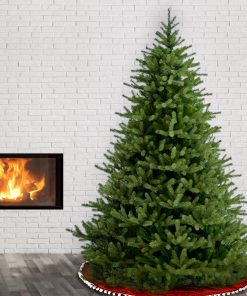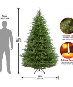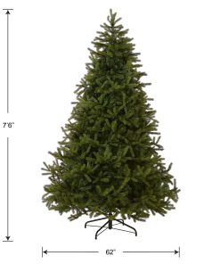 - This Norway Fir Artificial Green Christmas Tree is 7.5 feet tall with a 62 inch base diameter. Featuring hundreds of Feel Real individually crafted branch tips to create full bodied branches.